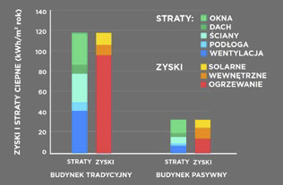 Zyski i straty cieplne, porównanie budynku tradycyjnego i budynku pasywnego